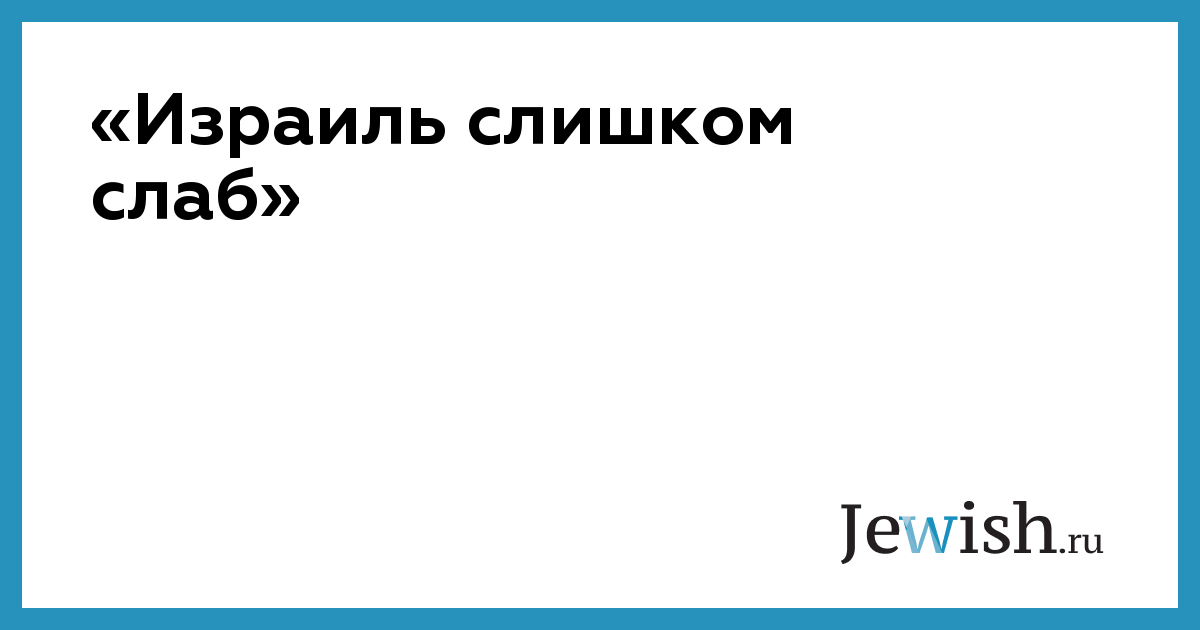 Президент Ирана Махмуд Ахмадинеджад считает, что «Израиль слишком слаб для того, чтобы нанести удары по ядерным объектам на территории Ирана». Глава Исламской республики заявил об этом вчера в интервью телеканалу «Аль-Джазира».