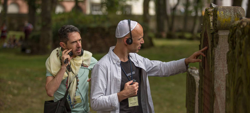 – Шекспира, его «Венецианского купца», идишскую поэзию эпохи Ренессанса, Бродского. И город, на фестивалях мы читаем город в рамках полевых семинаров. Обычно это выглядит так – группа из 40–60 участников, допустим, стоит на Набережной неисцелимых. Закат, и они все в наушниках, а там у них – стихи Бродского, зачитываемые лектором. Или исторические квесты устраиваем в ночи, или посещаем еврейские кварталы, кладбища, синагоги. Когда мы впервые просто посмотрели на карту Венеции, нас всех поразило, насколько она напоминает Талмуд – улочки прорезают городской «текст» так же, как пробелы отделяют основной текст от комментариев. Впрочем, такие «случайные» совпадения повсюду. Сейчас во Франкфурте, а точнее – в Майнце, Шпейере и Вормсе, в которых мы изучали историю важнейших общин средневековой Германии, тоже все мягко переплеталось друг с другом. Мы начали в синагоге в Вестэнде во Франкфурте. Она уцелела только благодаря своей встроенности в городское пространство – во времена погромов ее просто побоялись поджечь, дабы огонь не перекинулся на совсем рядом стоящие дома благочестивых бюргеров. А сразу после мы отправились в недавно отстроенную синагогу в Майнце, и архитектор, немецкий еврей Мануэль Герц, объяснял, насколько важно ему было встроить здание в привычную жизнь города и как он гордится, что дети гоняют вокруг синагоги на скейтах, а взрослые поедают здесь на лавочках сэндвичи в обеденный перерыв. А в самой синагоге золочеными буквами высечены отрывки из «Песни Песней». И буквально через час мы детально разбираем эти отрывки с литературоведом Петером Ш. Ленардтом. Так это, в общем, происходит.