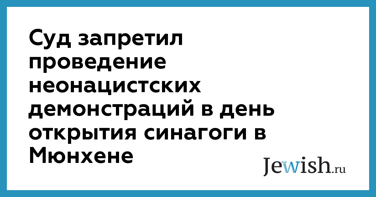 Суд Германии оставил в силе запрет всех неонацистских демонстраций, запланированных на 9 ноября — день открытия в Мюнхене заново отстроенной городской синагоги на ее историческом месте, сообщает EJP.