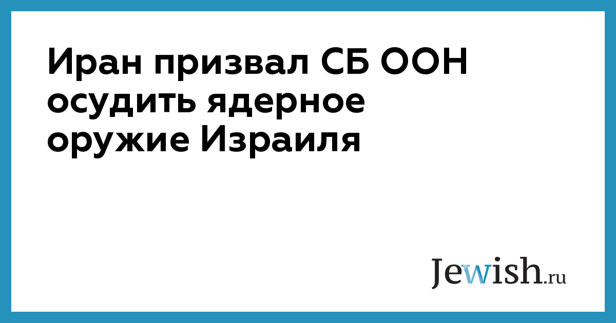 Иран во вторник потребовал от Совета Безопасности ООН осудить тайную разработку Израилем ядерного оружия и наличие его у еврейского государства. Тегеран также призвал Совет Безопасности «принудить» Израиль отказаться от ядерного оружия и поставить все свои ядерные объекты под контроль инспекторов ООН.