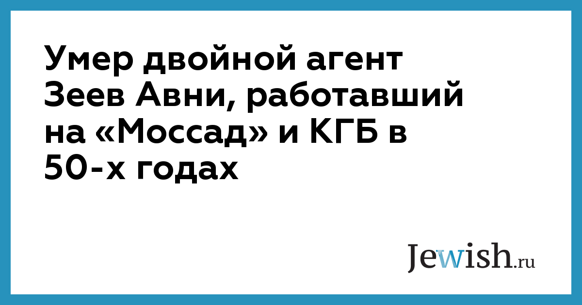 Умер двойной агент Зеев Авни, работавший на «Моссад» и КГБ в 50-х годах