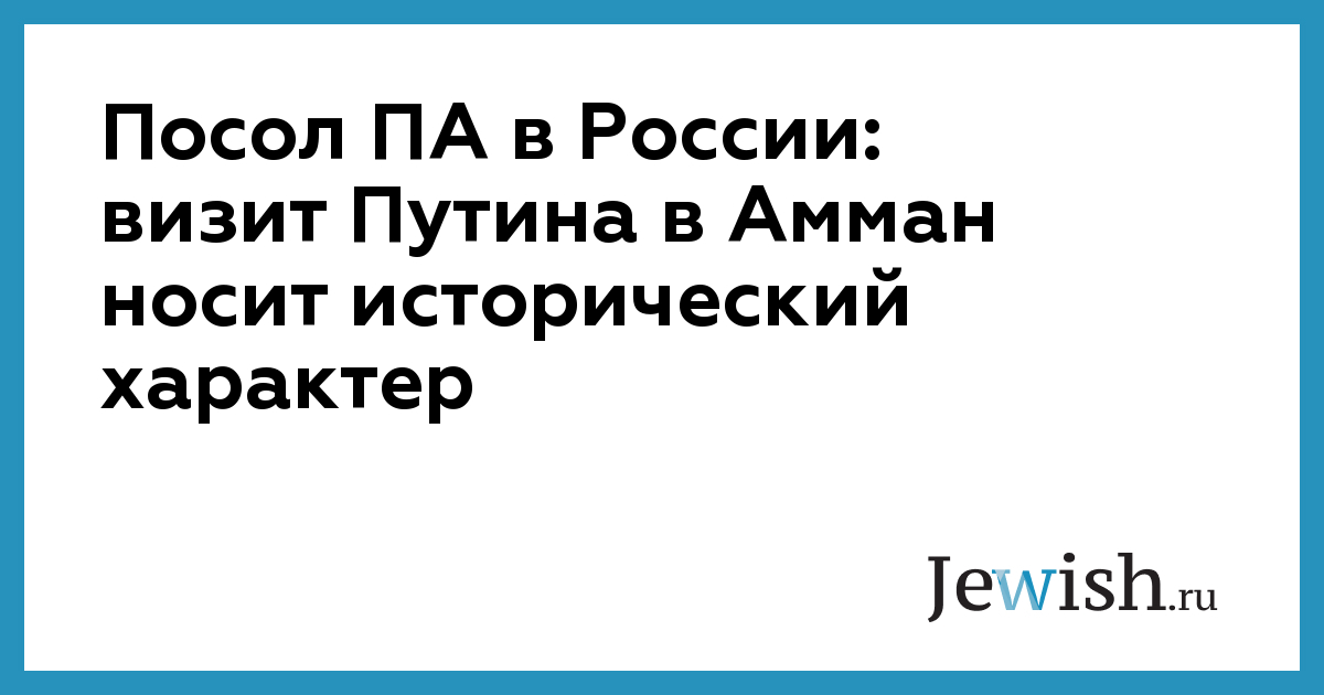 Посол ПА в России: визит Путина в Амман носит исторический характер
