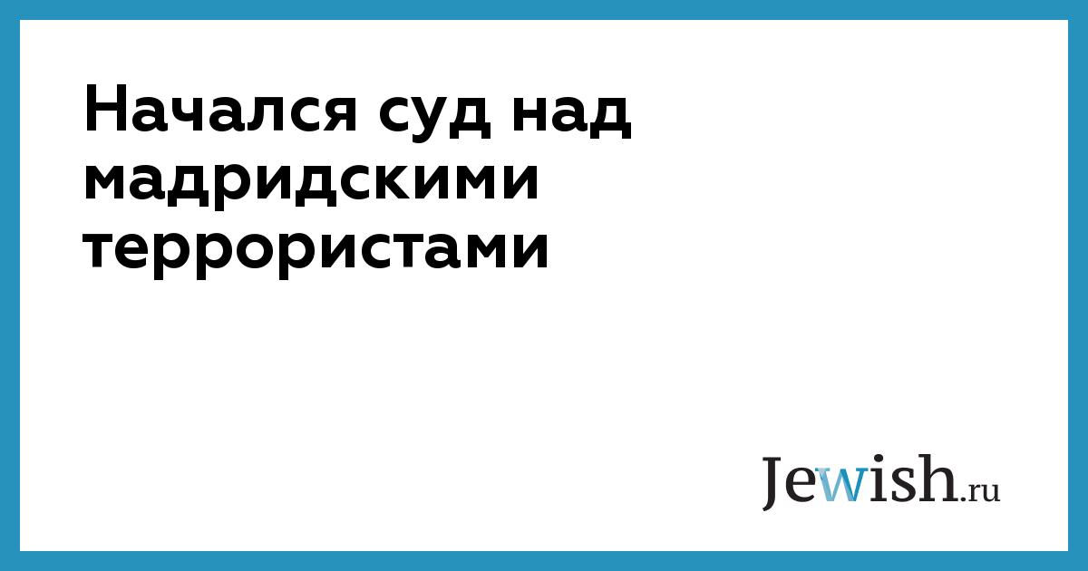 В четверг в Испании начался суд над организаторами мартовских терактов 2004 года в Мадриде, в которых погиб 191 человек. По делу проходят 29 подсудимых. Ожидается вызов примерно 100 экспертов и 600 свидетелей.