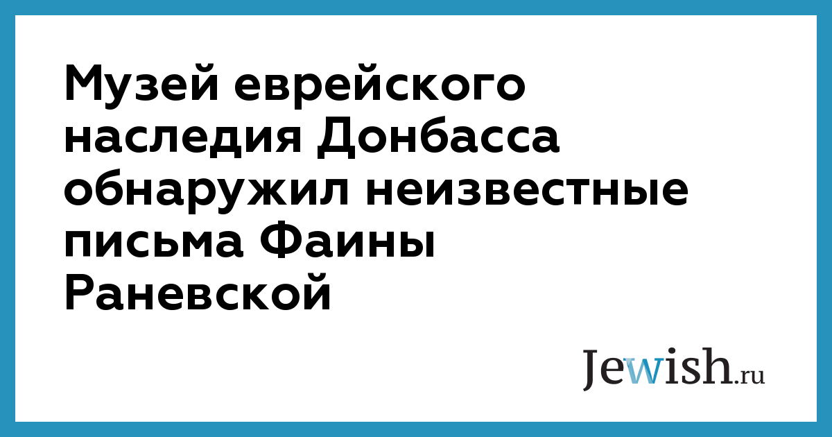 Музей еврейского наследия Донбасса обнаружил неизвестные письма Фаины Раневской