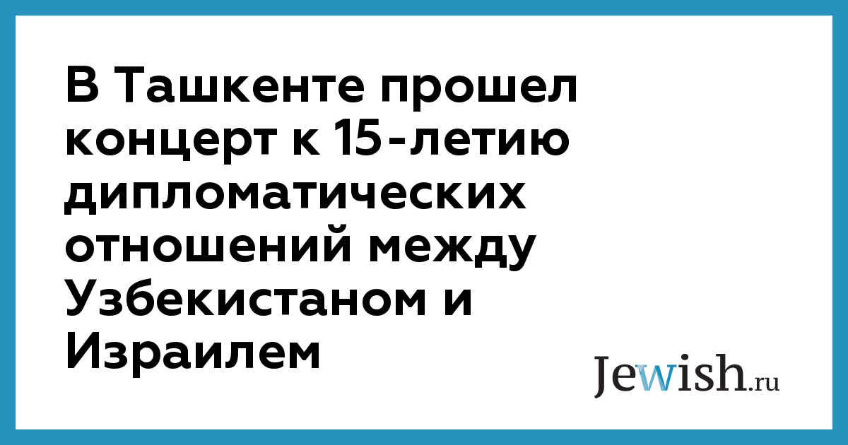 Концерт, посвященный 15-летию установления дипломатических отношений между Израилем и Узбекистаном, прошел 28 марта 2007 года в киноконцертном зале “Premier Hall”, — сообщили в пресс-службе посольства Израиля в Ташкенте ИА "Press-uz.info" в четверг.