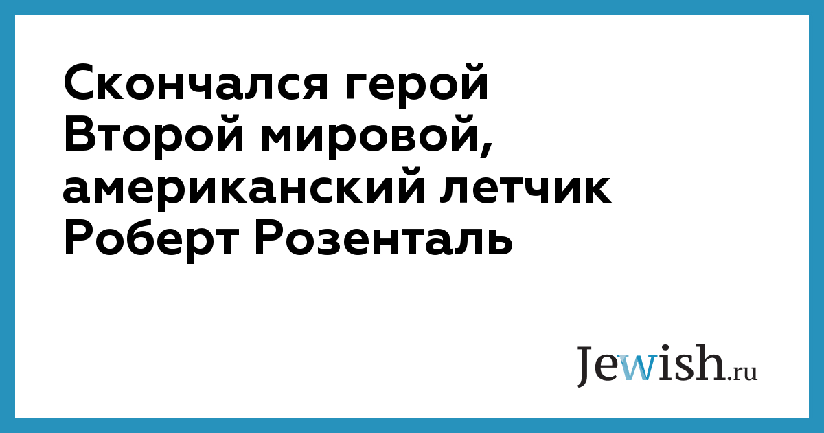 В конце апреля ушел из жизни в возрасте 89 лет ветеран Второй мировой войны, подполковник ВВС США Роберт Розенталь. Его боевые заслуги были отмечены 16 медалями, в том числе вручаемым в США «Крестом за доблестную службу». Последние годы ветеран жил в Харрисоне (штат Нью-Йорк).