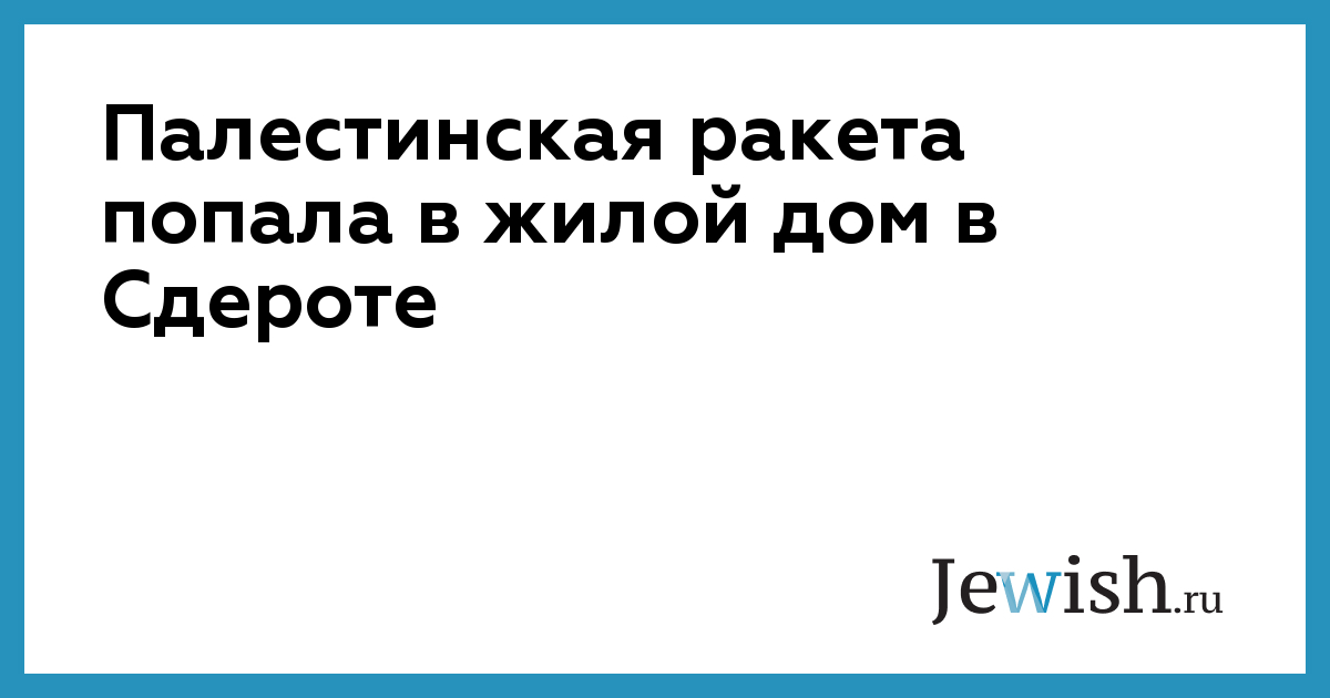 Палестинская ракета попала в жилой дом в Сдероте