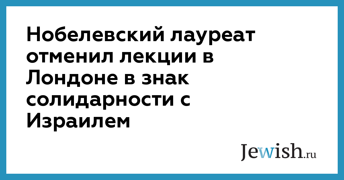 Нобелевский лауреат отменил лекции в Лондоне в знак солидарности с Израилем