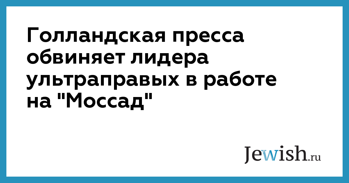 Голландская пресса обвиняет лидера ультраправых в работе на "Моссад"