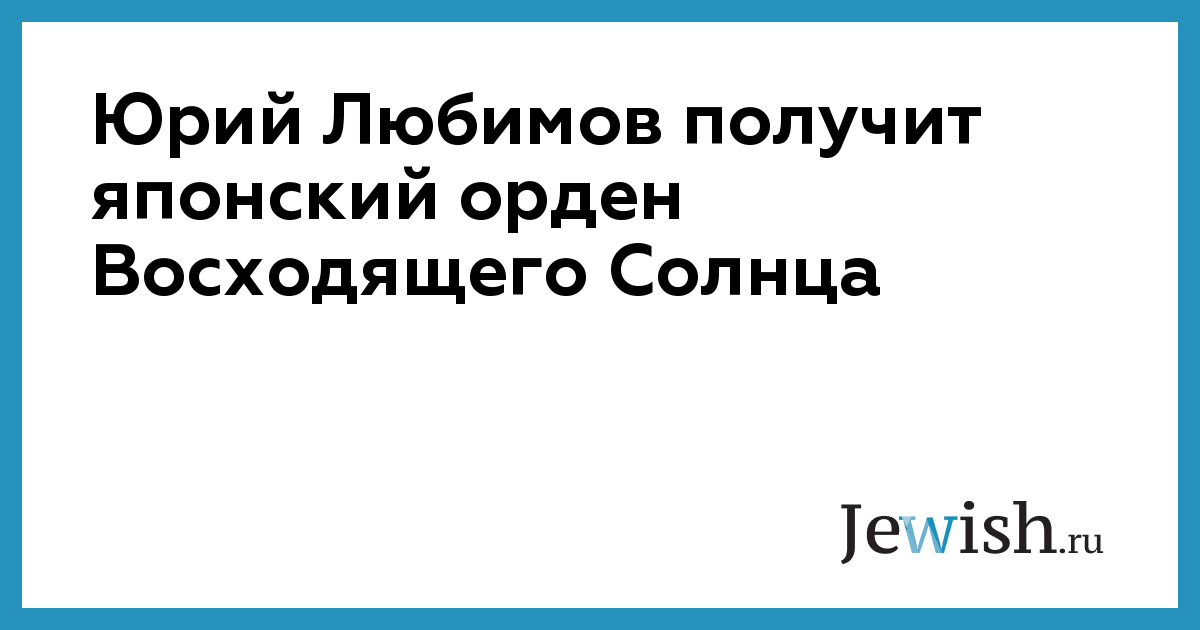 Художественному руководителю Театра на Таганке Юрию Любимову сегодня будет вручен японский орден Восходящего Солнца. Церемония состоится в резиденции японского посла.