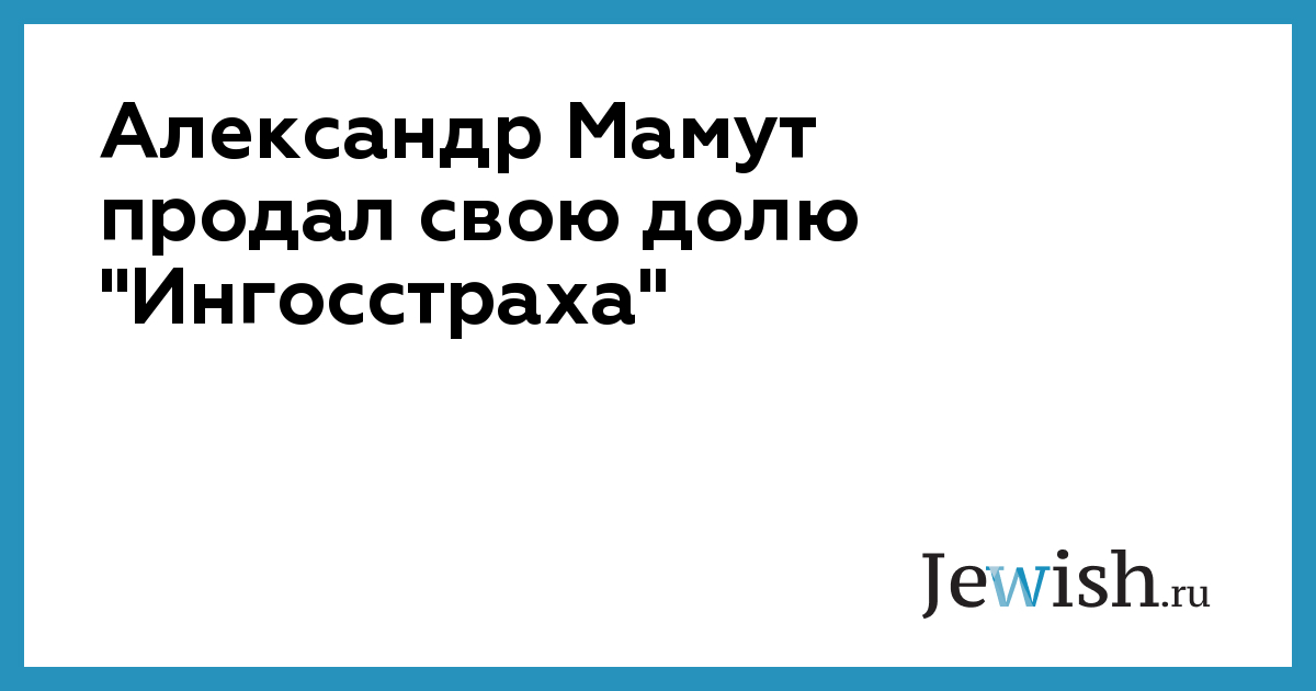 Предприниматель Александр Мамут продал свою долю "Ингосстраха" фирме, представляющей интересы мирового страхового гиганта Generali Group. Об этом сообщает "Коммерсант".