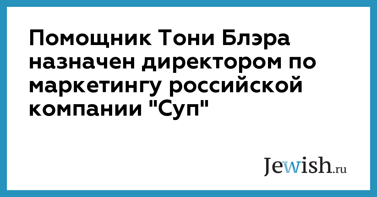 Помощник Тони Блэра назначен директором по маркетингу российской компании "Суп"