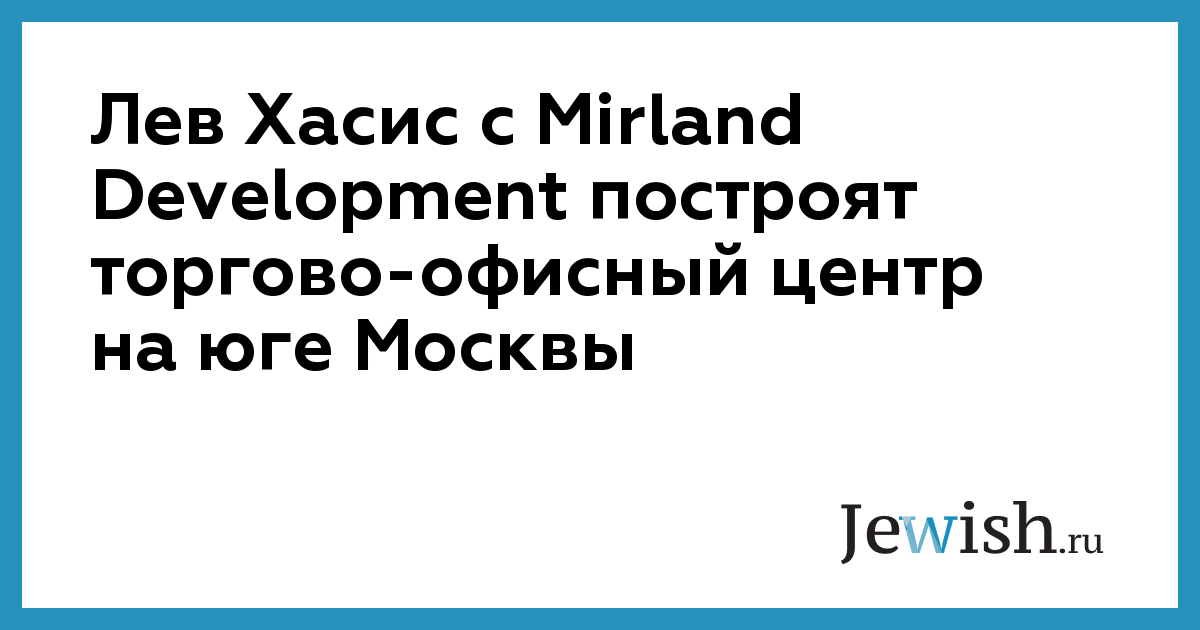 Лев Хасис с Mirland Development построят торгово-офисный центр на юге Москвы