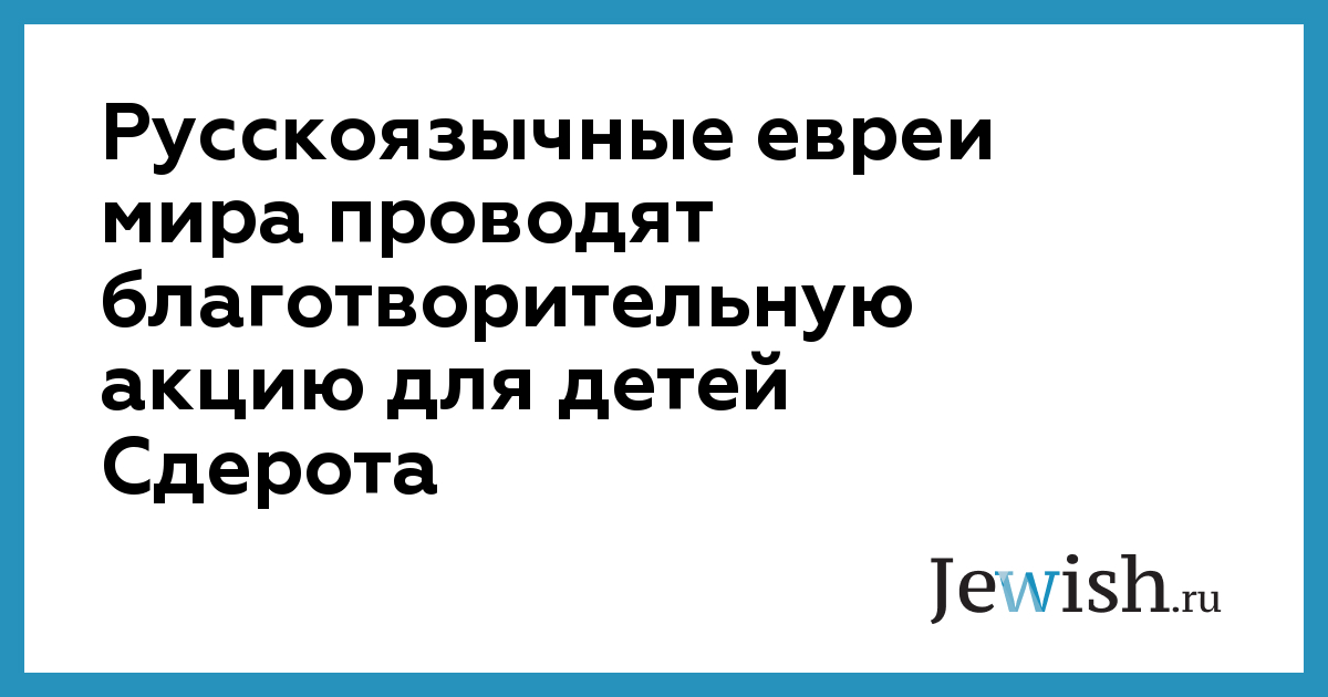Русскоязычные евреи мира проводят благотворительную акцию для детей Сдерота