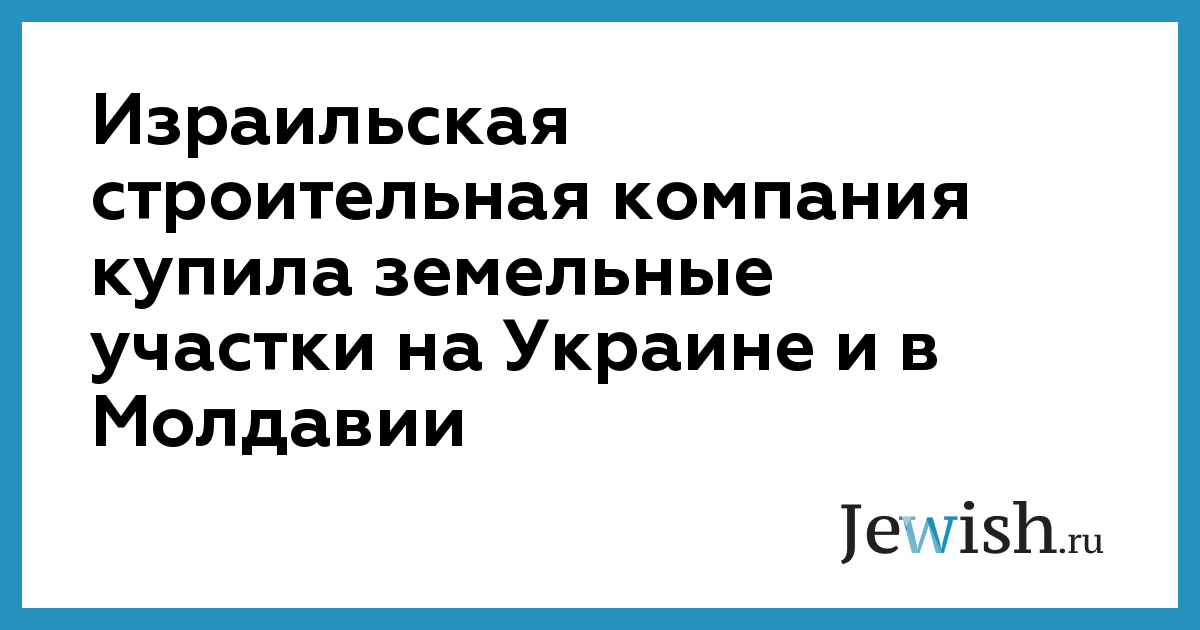 Израильская строительная компания купила земельные участки на Украине и в Молдавии