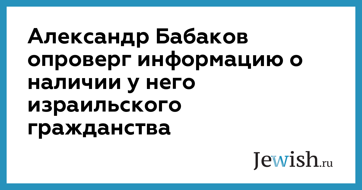 Александр Бабаков опроверг информацию о наличии у него израильского гражданства