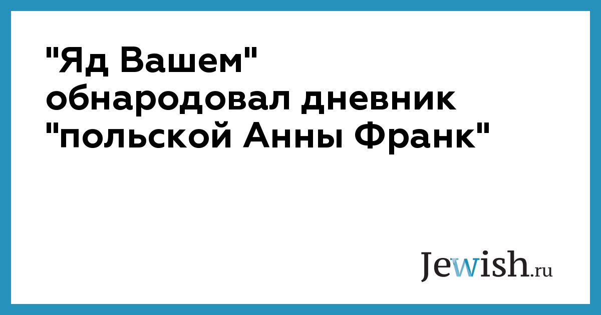 "Яд Вашем" обнародовал дневник "польской Анны Франк"