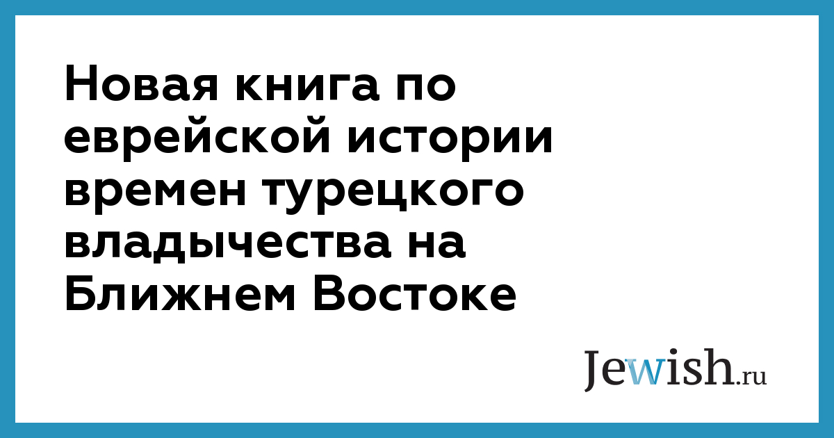Новая книга по еврейской истории времен турецкого владычества на Ближнем Востоке