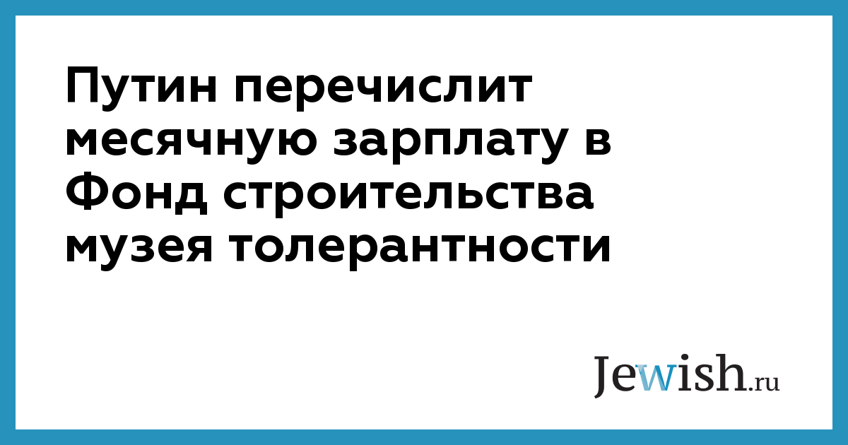 Путин перечислит месячную зарплату в Фонд строительства музея толерантности
