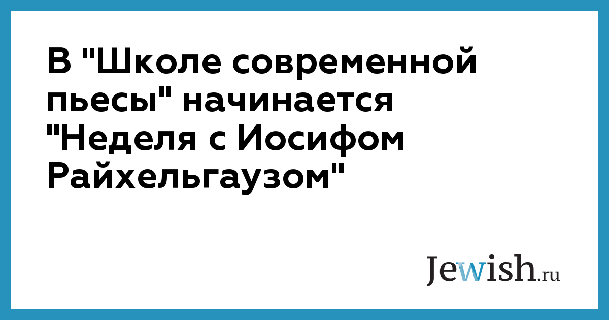 В "Школе современной пьесы" начинается "Неделя с Иосифом Райхельгаузом"