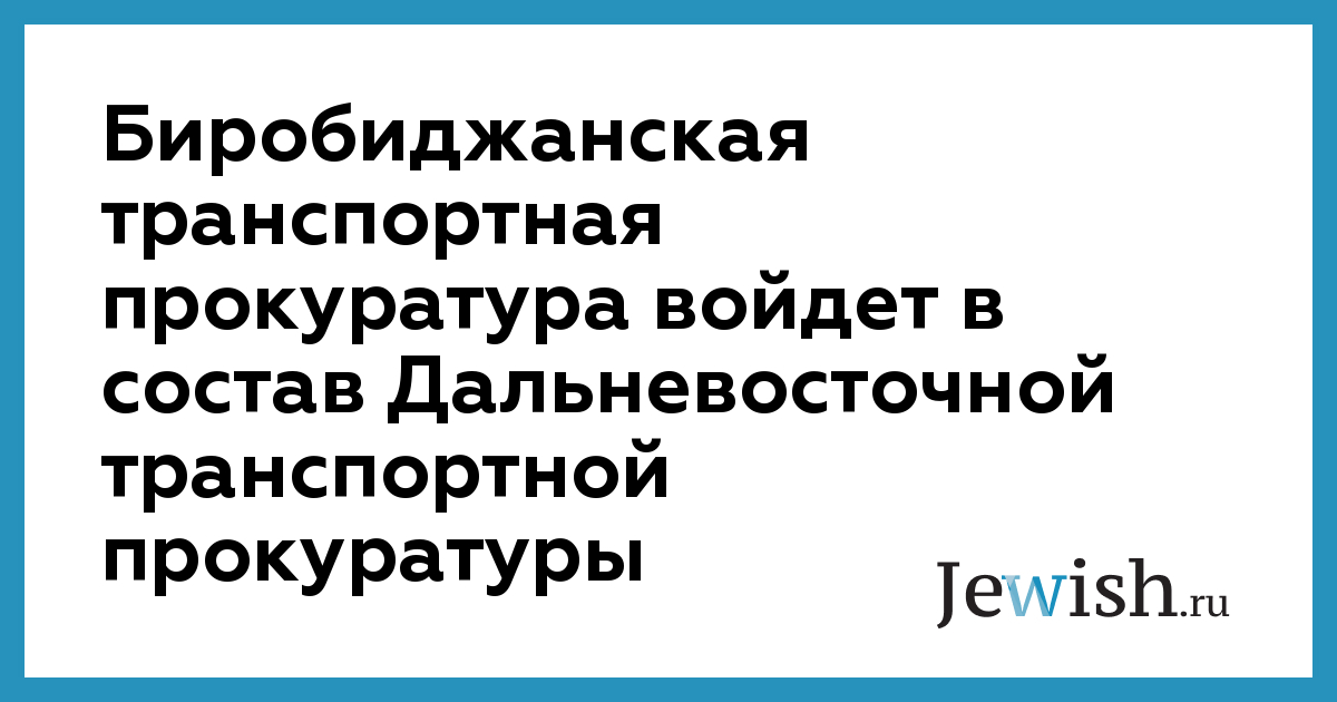 Как сообщила прокуратура ЕАО, с 1 августа Биробиджанская транспортная прокуратура будет исключена из состава прокуратуры Еврейской автономной области и передана в состав вновь созданной Дальневосточной транспортной прокуратуры с сохранением полномочий и штатной численности.