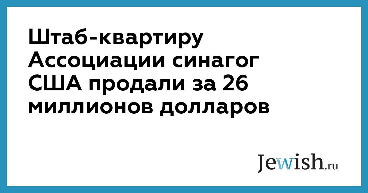 Штаб-квартиру Ассоциации синагог США продали за 26 миллионов долларов