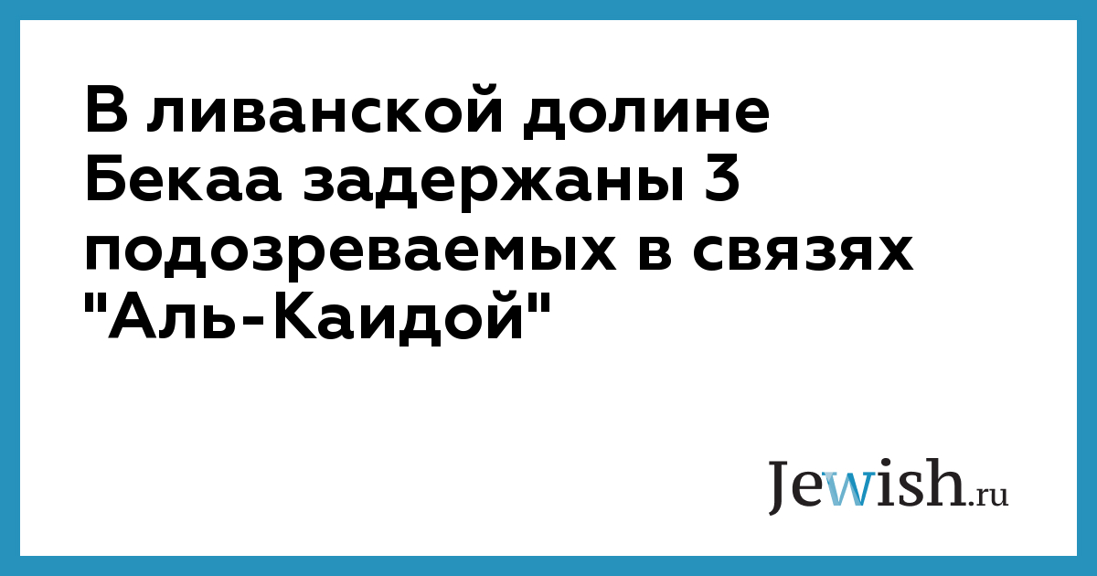Спецслужбы Ливана в субботу арестовали восточной долине Бекаа трех человек, подозреваемых в связях с "Аль-Каидой". Как сообщил источник в ливанских спецслужбах, двое подозреваемых — ливанец и бельгиец — были арестованы во время зачистки в деревне Балабая. Еще один — гражданин Ливана — был арестован за хранение взрывчатки в соседней деревне Бар-Элиас, где неделю назад ливанские спецслужбы, по их утверждению, уничтожили крупную базу "Аль-Каиды".