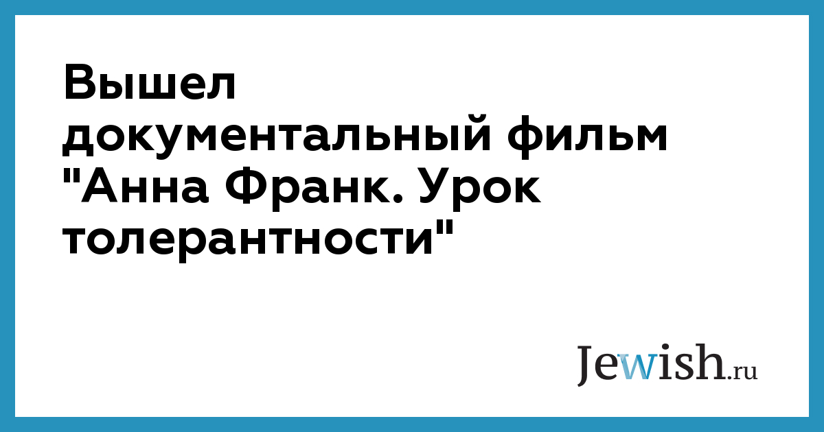 Вышел документальный фильм "Анна Франк. Урок толерантности"