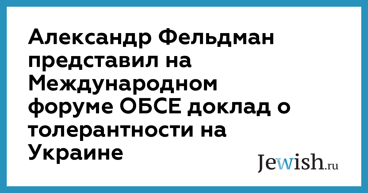 Отчет о ситуации с толерантностью на Украине, представленный возглавляемым народным депутатом Александром Фельдманом Международным центром толерантности, вызвал на конференции ОБСЕ высокого уровня как большой интерес, так и немало вопросов о том, что украинское государство намерено предпринять, чтобы улучшить положение. Об этом сообщает "Jewish News".
