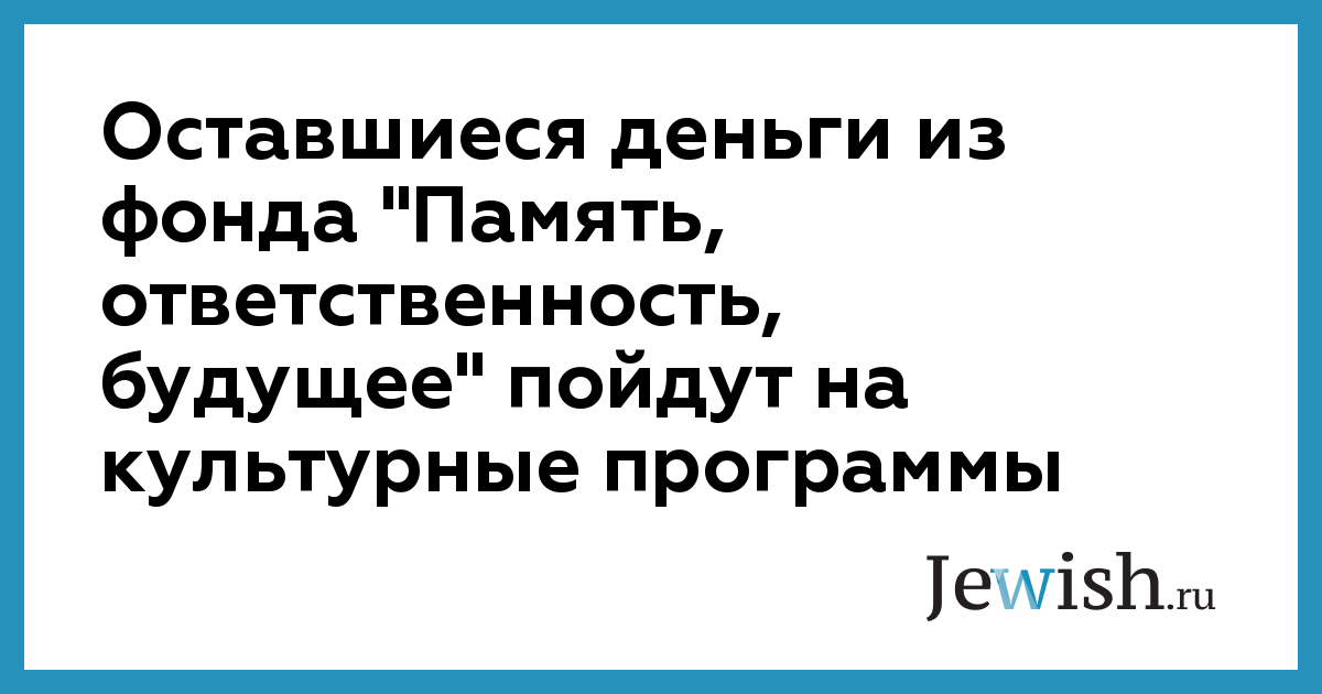 Оставшиеся деньги из фонда "Память, ответственность, будущее" пойдут на культурные программы