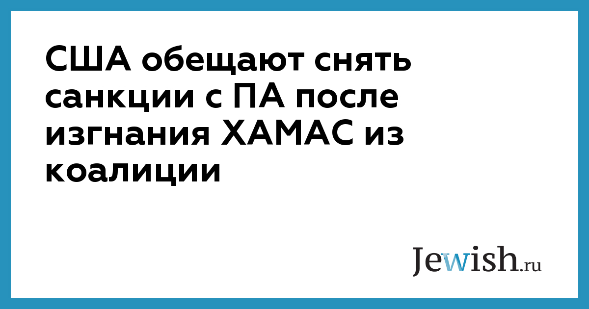 США обещают снять санкции с ПА после изгнания ХАМАС из коалиции