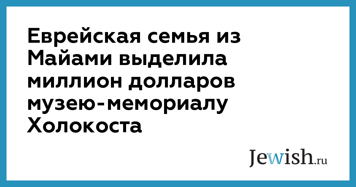 Еврейская семья из Майами выделила миллион долларов музею-мемориалу Холокоста
