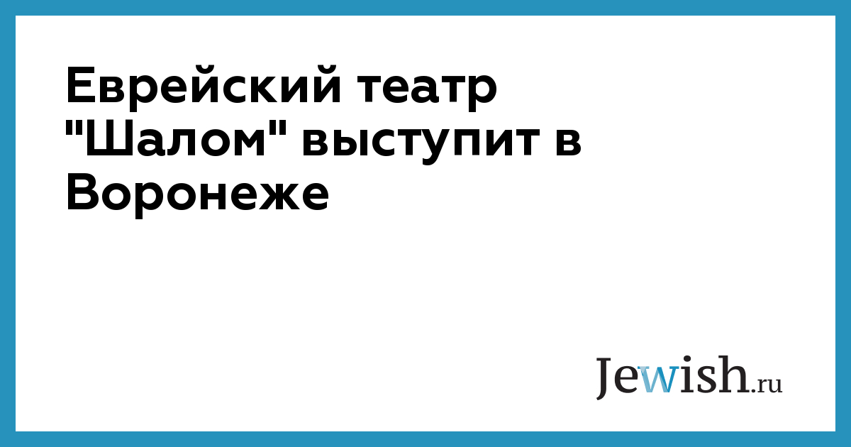 Московский еврейский театр «Шалом» в июле выступит в Воронежском театре драмы с гастрольной программой, сообщает порта "ЛГ".