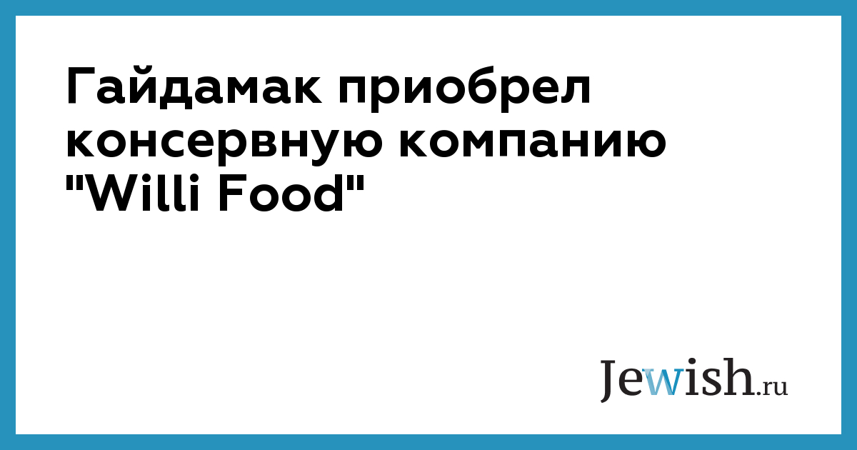 Через четыре дня после срыва сделки по приобретению некошерной сети "Тив Таам" Аркадий Гайдамак заключил другую сделку – договор на приобретение компании "Вилли Фуд", которая специализируется на импорте и распространении консервированных продуктов питания, сообщает "Едиот Ахронот".