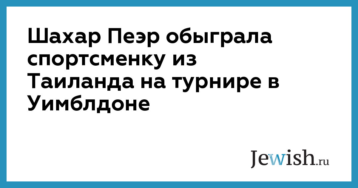 На начавшемся в понедельник в Лондоне теннисном турнире из серии "Большой шлем" -"Уимблдон" лучшая теннисистка Израиля (16-я ракетка мира) Шахар Пеэр обыграла представительницу Таиланда Тамарине Танасугарн. Матч первого круга завершился со счетом 7:5, 6:2.