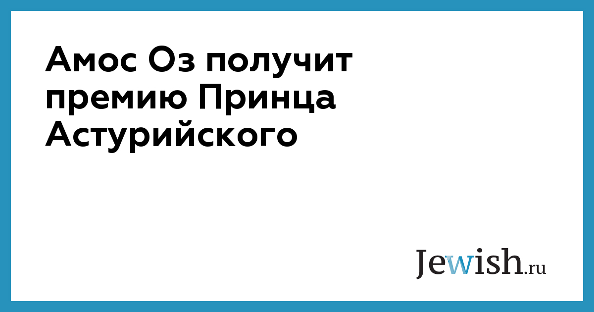 Известный израильский писатель Амос Оз награжден ежегодной литературной премией Принца Астурийского, сообщает "the Jerusalem Post".