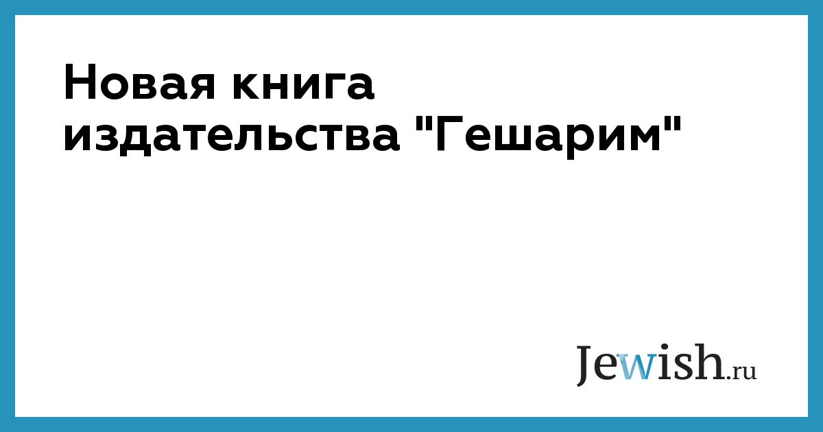 Новая книга издательства "Гешарим"