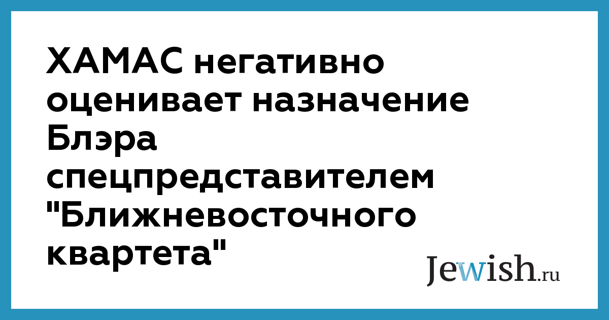 Палестинское радикальное движение ХАМАС негативно оценило решение "квартета" международных посредников по ближневосточному урегулированию назначить бывшего премьер-министра Великобритании Тони Блэра их представителем на Ближнем Востоке.