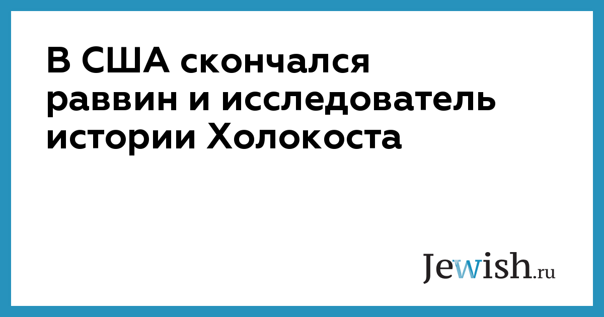В США скончался раввин и исследователь истории Холокоста