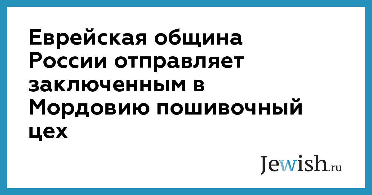 Еврейская община России отправляет заключенным в Мордовию пошивочный цех