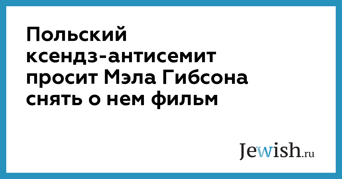 Польский ксендз-антисемит просит Мэла Гибсона снять о нем фильм