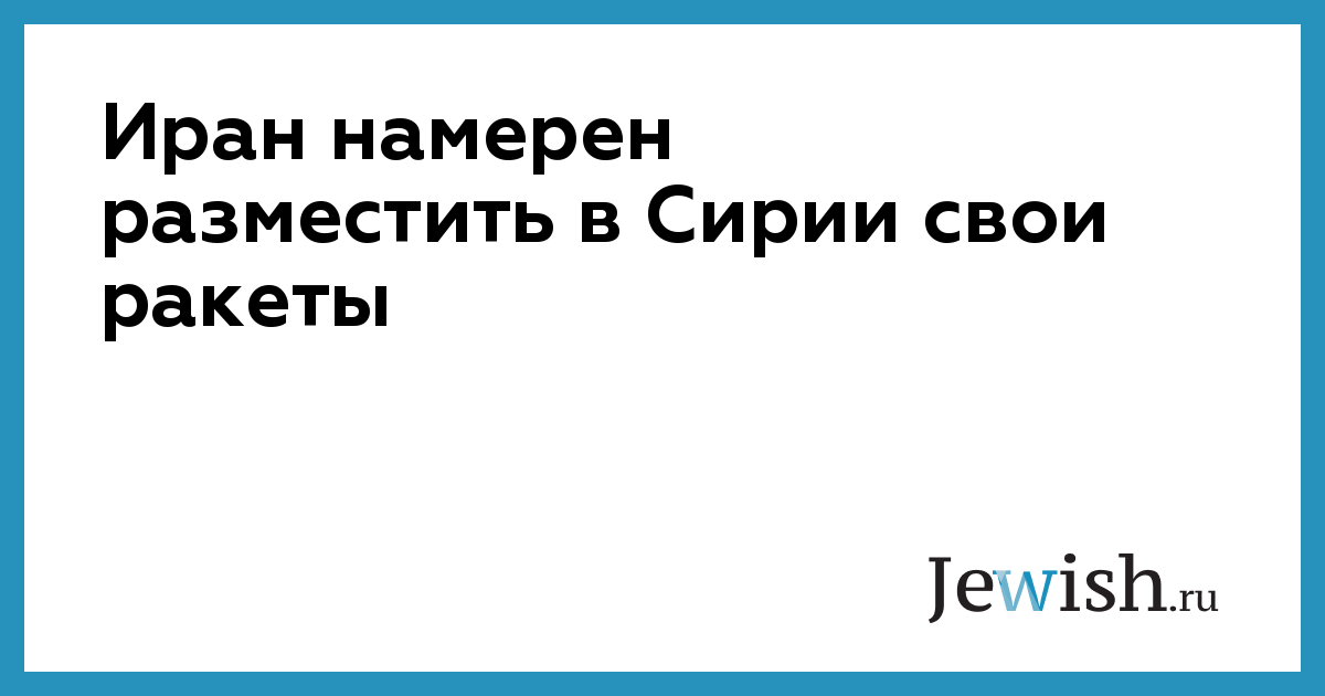 Иран намерен разместить в Сирии ракеты, которые могут быть использованы против Израиля, сообщает IsraelNN со ссылкой на британскую газету Telegraph.
