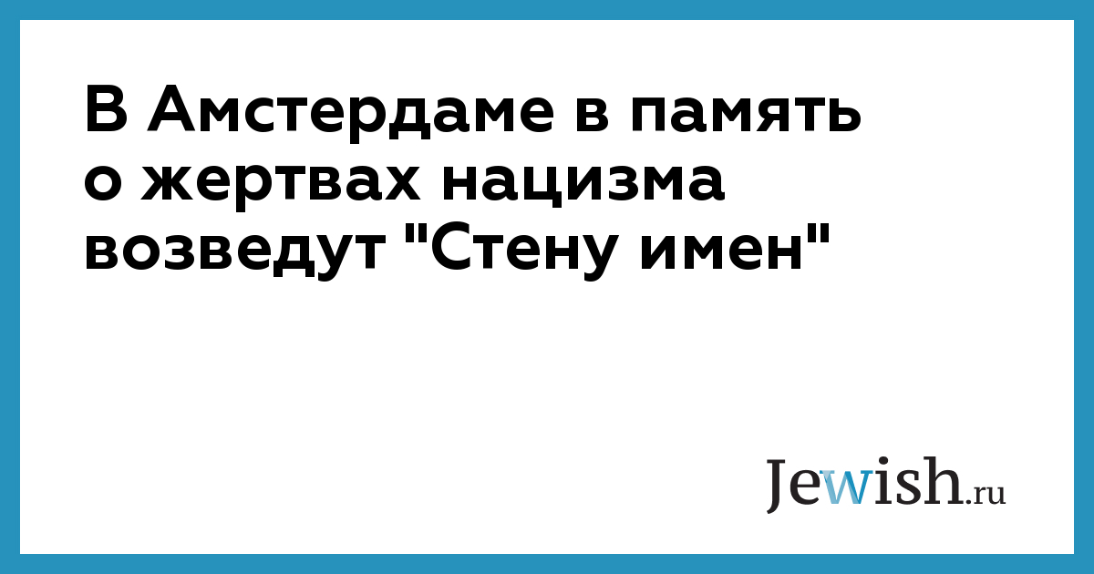 "Голландский комитет памяти жертв Аушвица" намерен возвести "Стену Имен" в память о 110 тысячах голландцев, погибших в годы Второй мировой войны в нацистских лагерях смерти, передает JTA.