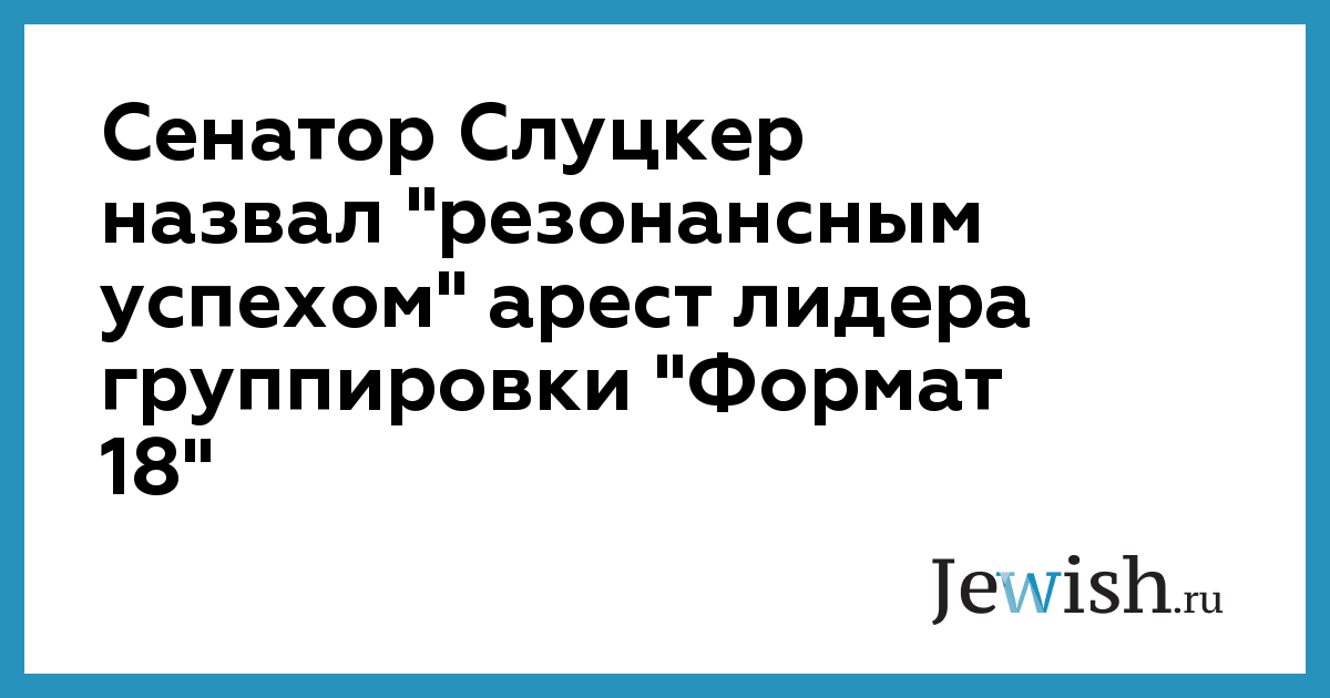Сенатор Слуцкер назвал "резонансным успехом" арест лидера группировки "Формат 18"