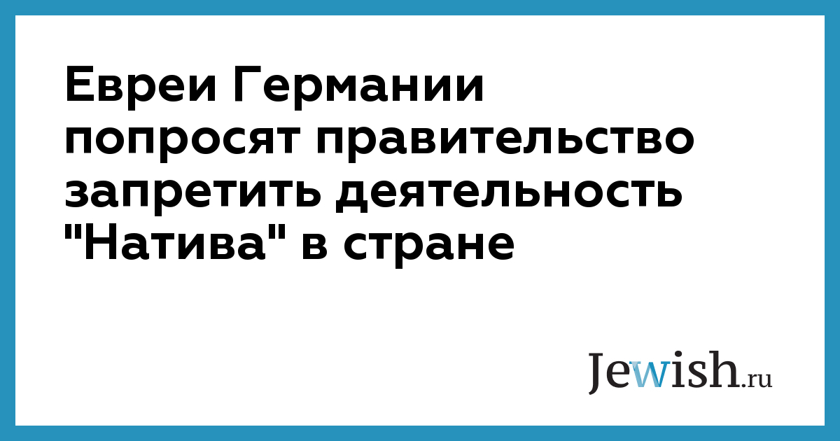 Еврейская община Германии намерена обратиться к правительству страны с требованием ввести запрет на деятельность гуманитарной еврейской организации "Натив", сообщает MIGnews.