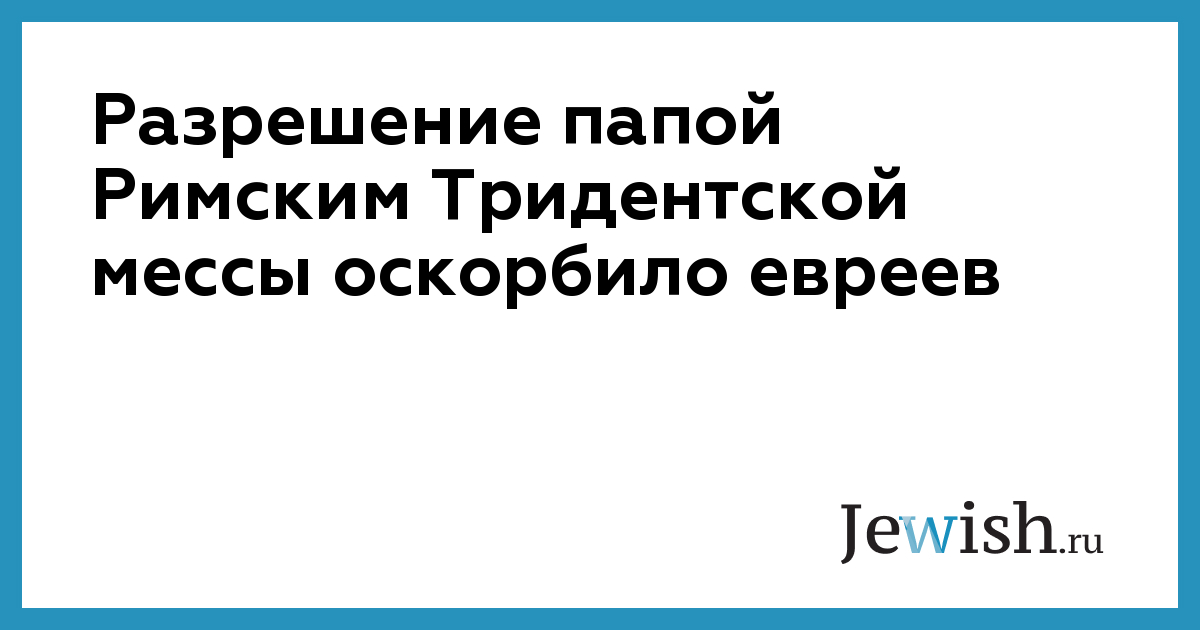 Разрешение папой Римским Тридентской мессы оскорбило евреев