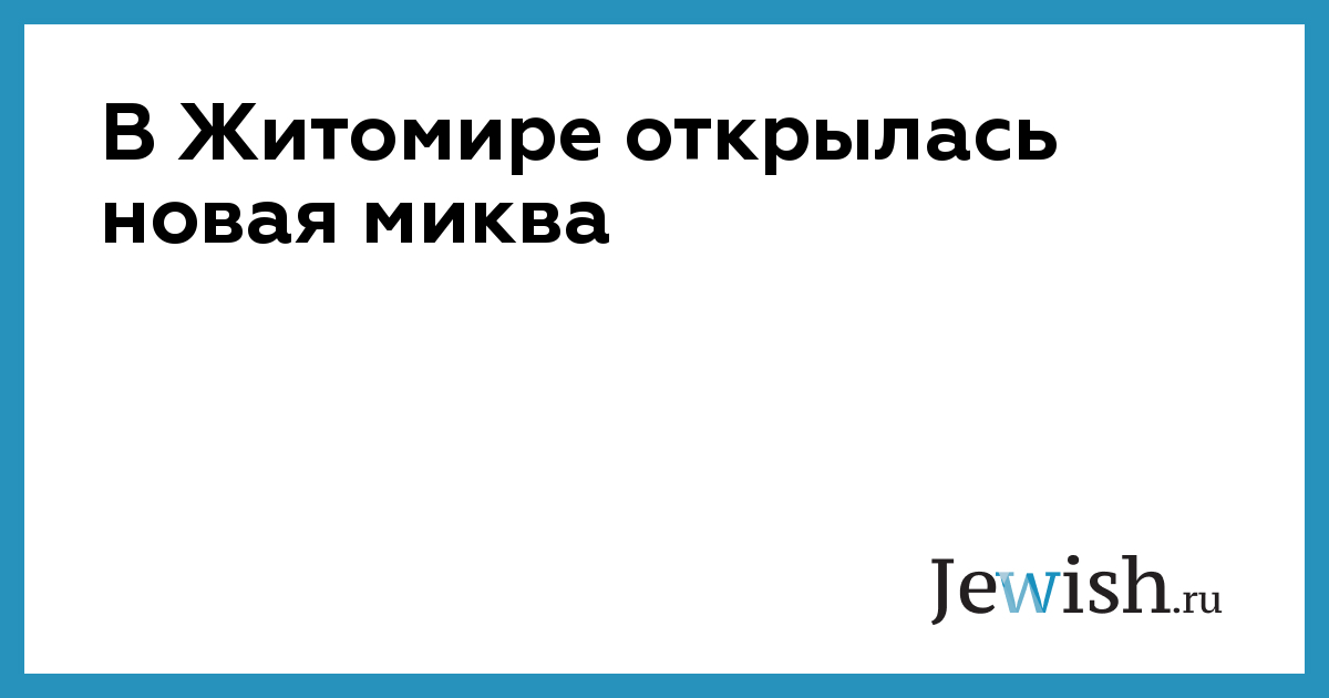 В Житомире состоялось открытие нового здания женской миквы. Основными спонсорами строительства миквы, при которой будет работать современный косметологический кабинет, выступили члены местной еврейской общины Яаков Вайнроб, Моше Менахем Мендл Гельбштейн, его сын Элиэзер Мордехай Гльбштен и другие.