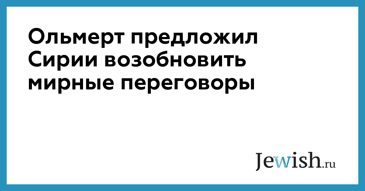 Премьер-министр Израиля Эхуд Ольмерт предложил президенту Сирии Башару Асаду возобновить прямые переговоры о мире, не дожидаясь американского посредничества.