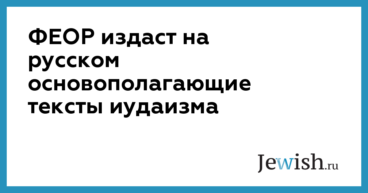 ФЕОР издаст на русском основополагающие тексты иудаизма