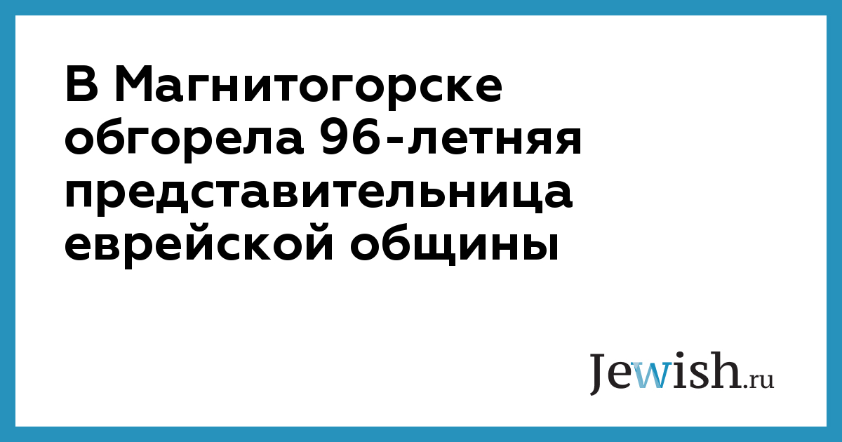 В Магнитогорске обгорела 96-летняя представительница еврейской общины